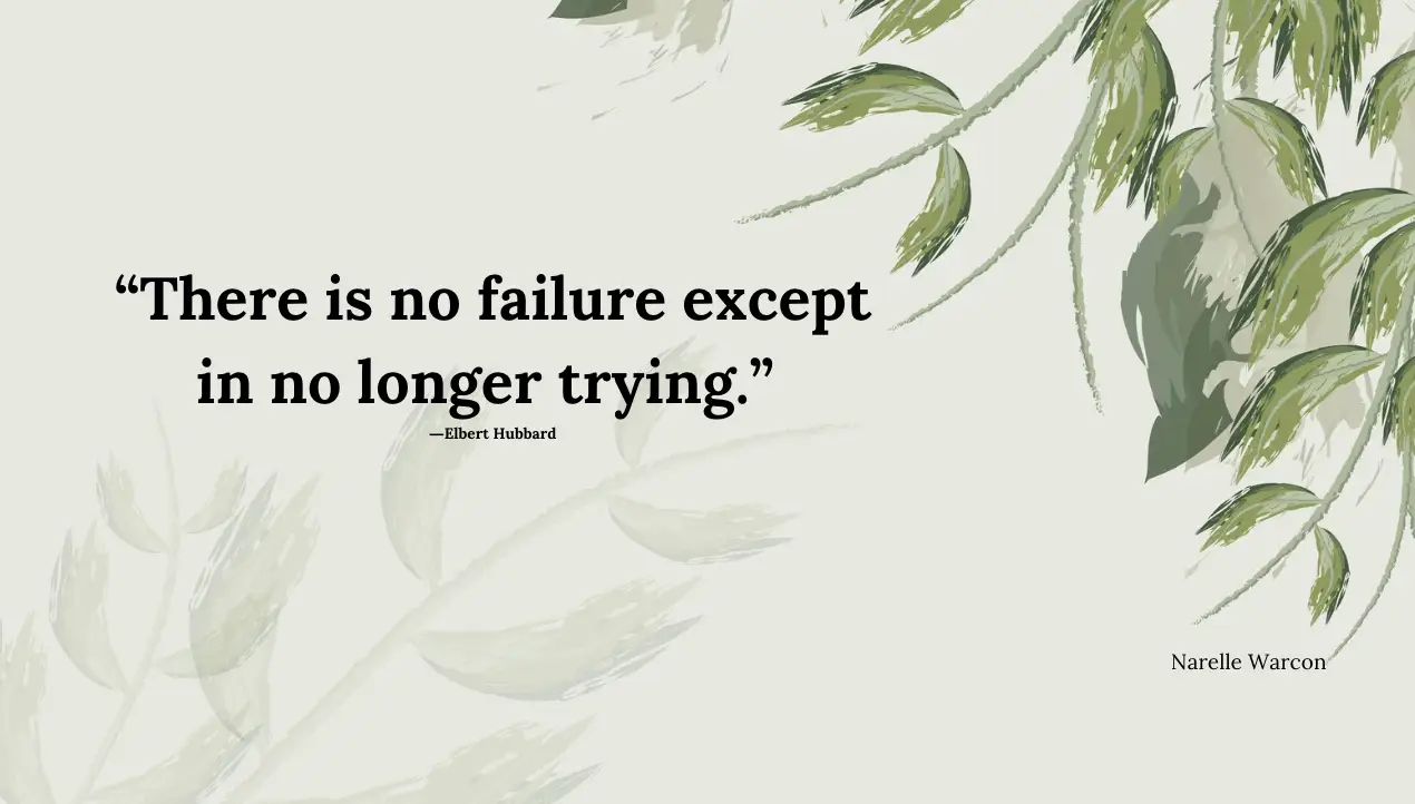 This brings me to a quote by Elbert Hubbard: There is no failure except in no longer trying.